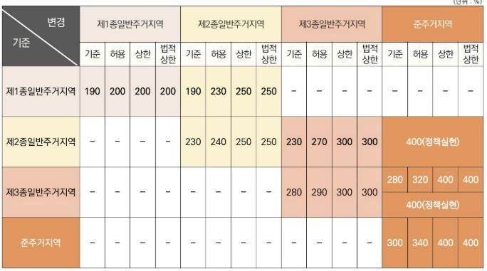 | ▲ 2030 부천시 도시·주거환경정비기본계획 변경 중 ‘주거지역 용적률 체계 변경안 총괄표’ |