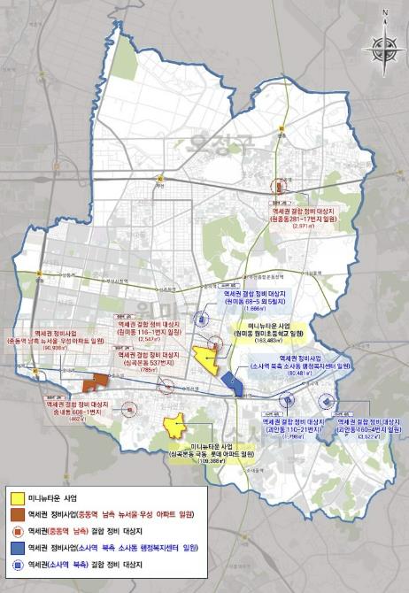 | ▲ 지난 7월 선정된 ‘미니뉴타운·역세권정비사업’ 대상지 위치도 |