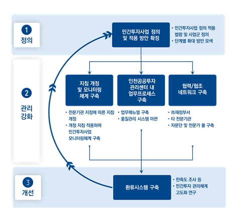 2024년 기획재정부 전문기관으로 지정된 인천공공투자관리센터 역시, 기존의 ‘사전검토’위주 역할에서 사업의 운영·종료 단계까지 아우르는 종합적 관리 영역으로 역할이 확장되어야 민간투자사업 이슈 대응이 원활해질 수 있다.