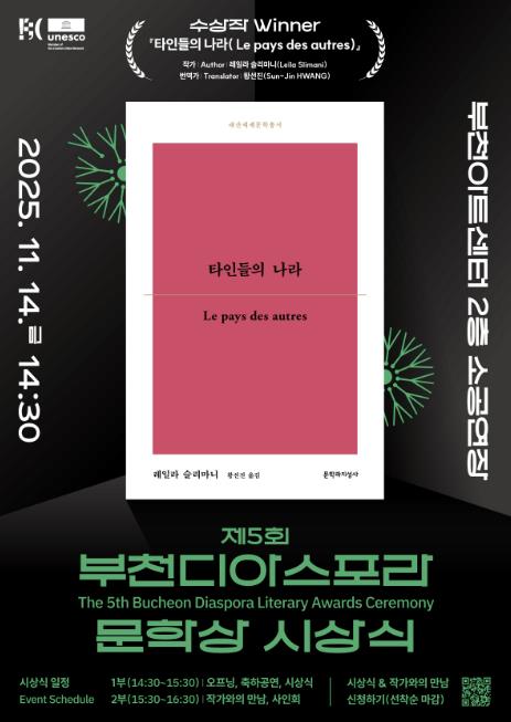 [파이낸셜경제=김기보 기자] 부천시는 11월 14일 부천아트센터에서 열리는 ‘2025년 제5회 부천디아스포라문학상’ 시상식을 앞두고, 수상작으로 레일라 슬리마니 작가의 ‘타인들의 나라(Le pays des autres)’를 선정했다고 22일 밝혔다.