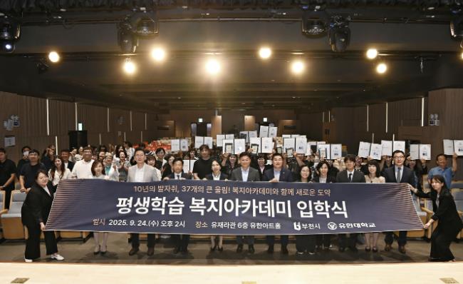 [파이낸셜경제=김기보 기자] 부천시는 지난 24일 유한대학교에서 ‘부천시·유한대학교 복지아카데미’ 입학식과 업무협약식을 열었다. 이번 행사는 조용익 부천시장과 장은영 유한대학교 총장을 비롯해 37개 동 지역사회보장협의체 위원장 등 150여 명이 참석한 가운데 진행됐다.