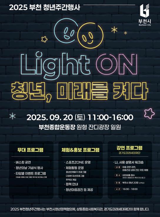 [파이낸셜경제=김기보 기자] 부천시는 청년의 날을 기념해 9월 20일 부천종합운동장 원형 잔디광장에서 ‘2025 부천 청년주간행사’를 연다.