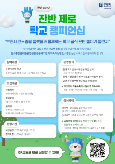 부천시 관계자는 “이번 챔피언십이 학생들에게 음식물 쓰레기 문제와 탄소중립의 중요성을 자연스럽게 체감하는 계기가 되길 바란다”며 “작은 실천이 모여 큰 변화를 만드는 만큼, 많은 학교가 자발적으로 참여해 탄소중립 도시 부천을 함께 만들어가길 기대한다”고 말했다.