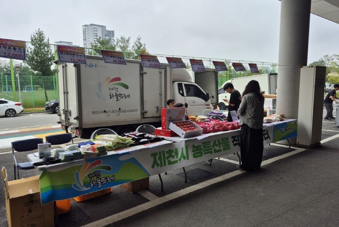 [파이낸셜경제=김기보 기자] 제천시는 지난 9월 30일 충북 오송단지에서 열린 식품의약품안전처 주관 직거래장터에 지역 농산물 판매업소 ‘하늘뜨레’와 함께 참여해, 오송단지 내 6개 입주기관 직원과 주민 등 2,000여 명을 대상으로 지역 특산품을 판매했다.