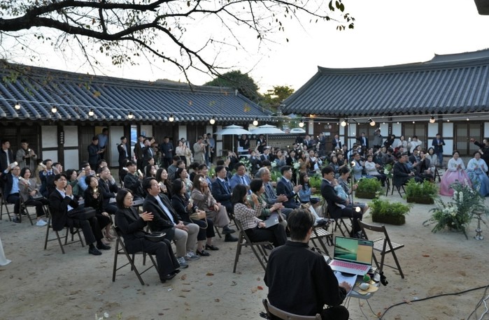 전통문화유산인 목사내아에서 열린 3호 커플의 예식은 맑은 가을 햇살과 단풍이 어우러진 가운데 한옥의 고즈넉한 정취와 예식을 축하하는 꽃길이 조화를 이루며 신랑 신부와 하객 모두에게 잊지 못할 감동을 선사했다.