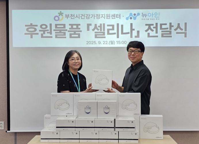 [파이낸셜경제=김기보 기자] 부천시건강가정지원센터는 헬스테크 스타트업 ㈜뉴아인으로부터 건강보조기기(위드녹스, 셀리나 등)를 후원받아 지역사회 가정에 실질적인 지원을 이어가게 됐다.