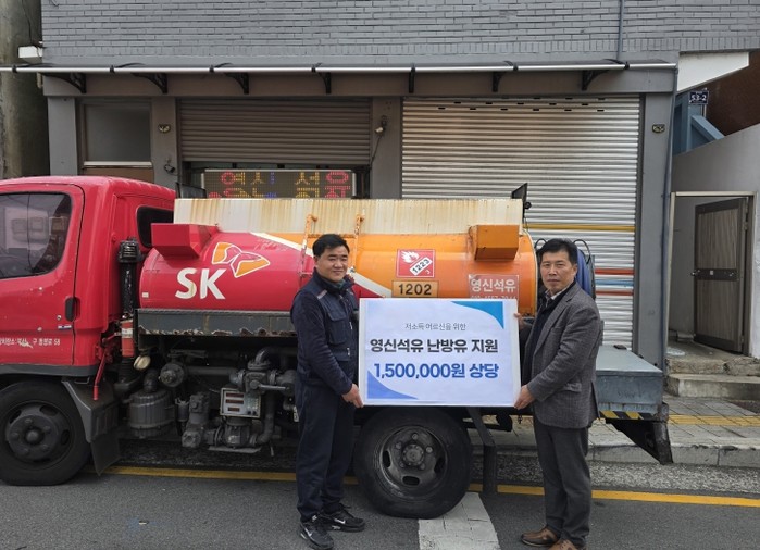 [파이낸셜경제=박영진 기자] 영신석유(대표 임성진)에서는 지난 16일 부산 중구노인복지관 분관에 150만원 상당의 난방유(등유)를 지원했다.
