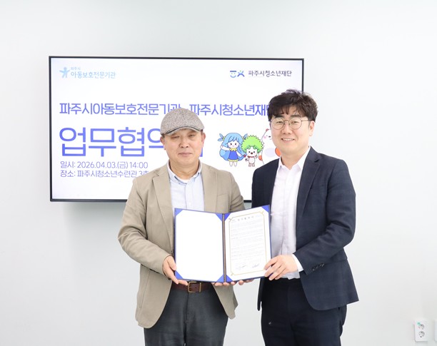 [파이낸셜경제=김기보 기자] (재)파주시청소년재단과 파주시아동보호전문기관은 파주시 아동 및 청소년의 건강한 성장과 복지 증진을 위해 상호 협력하는 업무협약(MOU)을 체결했다고 밝혔다.