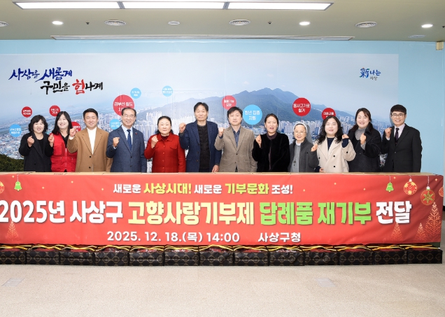 [파이낸셜경제=박영진 기자] 부산 사상구는 지난 18일 본관 3층에서‘2025년 고향사랑기부제 답례품 재기부 전달식’을 개최했다고 밝혔다.